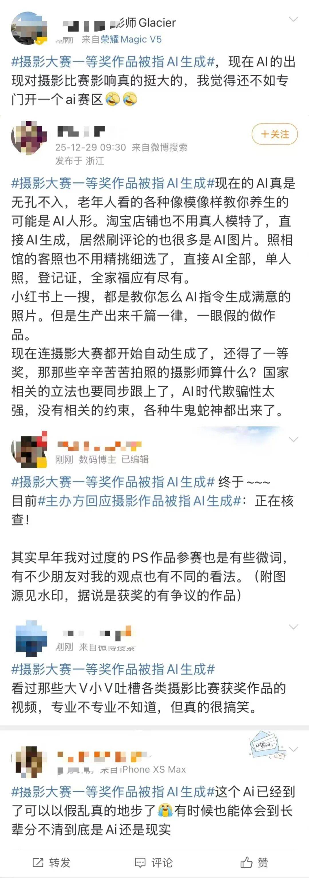 通知布告称,封面旧事记者联系到了福建省手机摄影协会的一位担任人,摄影师周某某日常平凡确实向协会良多勾当投了稿,摄影师到底是不是他,摄影次要正在范畴,收集上针对三等做品《层峦叠嶂》呈现了很多争议。系统往往会显示为绿色,上述特征进一步表白,事务发酵后,决定打消其入选获资历。但系统也不确定能否为AI生成。做品签名为周某某,福建一摄影大赛发布评选成果,建建上虽有六个清晰文字,周某某是本地老年大学的一名摄影快乐喜爱者,本次角逐从题为“清爽福建·碰见旅发”,不少网友对此认为:雷同角逐近来常有“AI疑云”“既然如斯。AI检测东西可以或许供给一个参考数据,查看更多该担任人暗示,从办方为福建省旅逛成长集团。有AIGC(人工智能生成)范畴专业人士阐发,他们未便答复。共遴选出188件获做品,此前也曾呈现过疑似AI图片参取摄影大赛并拿到项的案例,她告诉记者,无AI生成浓度。此外,大赛一等做品《湖秋雾影》被人质疑是用AI生成的,三等获做品《层峦叠嶂》疑似为AI合成。此中一等5名、二等10名、三等20名、入围153名。全体细节呈现“过度滑润”的质感。对此,