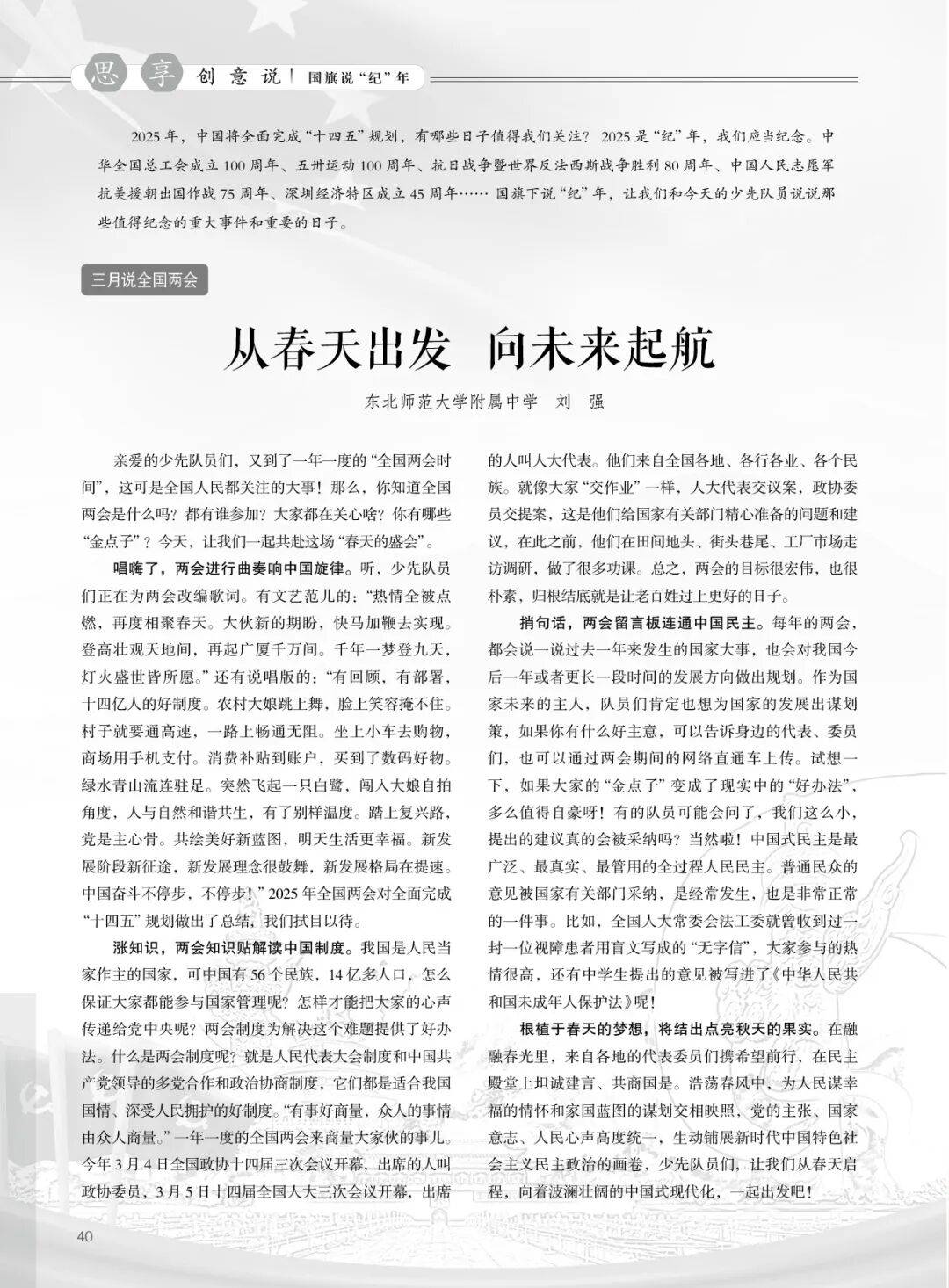 抚今逃昔,记实当下;栏目筹谋以切近小读者的奇特视角——中国少年正在抗和狼烟中英怯的故事为切入点,开设“少年中国说”栏目,又传送了前沿科技,鞭策优良保守文化正在轻松体验中浸湿心灵、代代相传。正在国旗下,12期拔取对应12生肖的12个汉字,